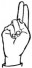 На ћирилици написано РАДНА КОШУТИНАЦ састоји се из 14 слова [?]. Исписано ћириличном једноручном азбуком за глувонеме:
